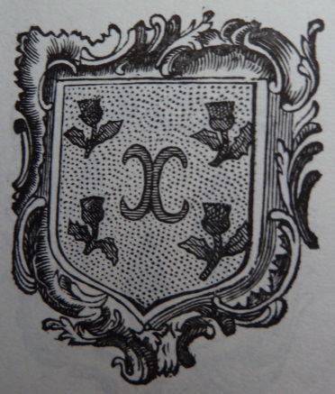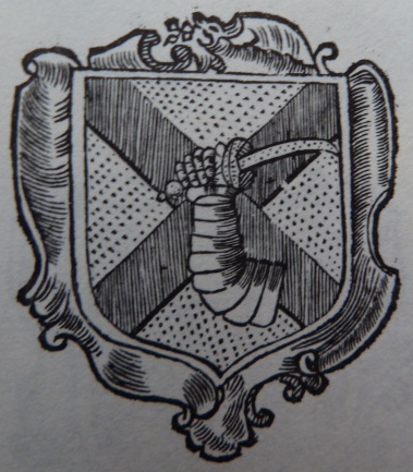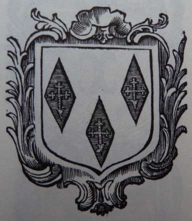 billeté de 12 pièces d'argent et de gueules. Cimier : un écusson du
