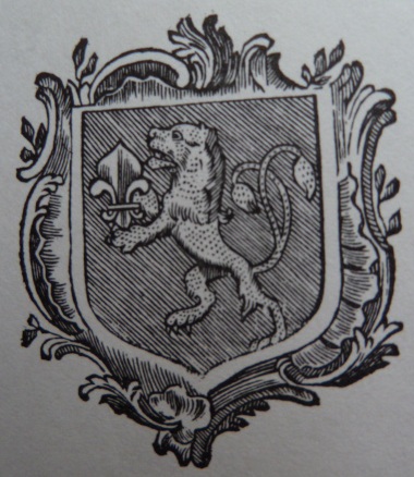 De sinople au lion d'or, la queue passée en sautoir et tenant une fleur de lys d'argent. Cimier : le lion de l'écu.