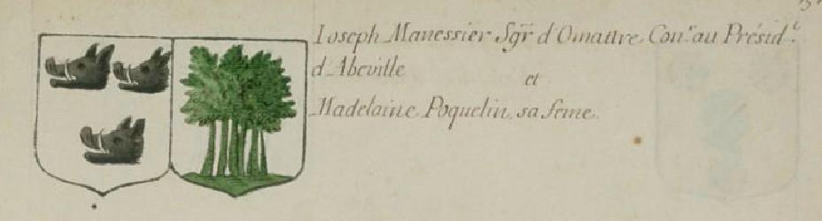 3° Madeleine Pocquelin, femme de Joseph Manessier, seigneur d'Omattes,