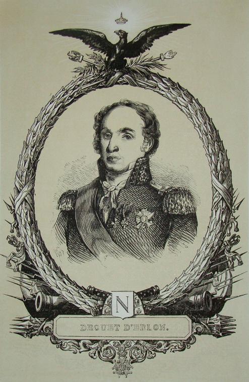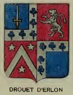 DOULCET-D'EGLIGNY Louis DOULCET-D'EGLIGNY (1756-????), maire du 7e arrondissement de Paris, chevalier de l'Empire par lettres patentes du 21 décembre 1808. Règlement d'armoiries : Parti : le premier, coupé de gueules à deux rencontres de bélier d'argent, et de sable fuselé d'or ; le deuxième, d'azur au croissant d'argent, accompagné en chef de deux étoiles d'argent et en pointe de deux cannettes de même, les unes et les autres posées en fasce ; à la bordure de gueules du tiers de l'écu, chargée au point d'honneur du chef du signe des chevaliers. Livrées : les couleurs de l'écu. Informations plus précises sur http://chan.archivesnationales.culture.gouv.fr/ BB/29/970 page 287. Titre de chevalier, accordé à Louis Doulcet d'Egligny, à la suite du décret du 28 avril 1806 le nommant membre de la Légion d'honneur. Madrid (21 décembre 1808). BB/29/1072 page 90. M. le chevalier Doulcet d'Egligny. DOULCET-PONTÉCOULANT Gustave DOULCET-PONTÉCOULANT (1765-????), sénateur, comte de l'Empire par lettres patentes du 26 avril 1808. Règlement d'armoiries : Champs de gueules, croissant et croissant à huit branches d'argent, quartier du Sénat. Livrées : rouge, argent et azur. Informations plus précises sur http://chan.archivesnationales.culture.gouv.fr/ BB/29/974 page 57. Titre de comte accordé à Louis, Gustave Doulcet de Pontécoulant. Bayonne (26 avril 1808). BB/29/1060 page 116. M. le comte Doulcet de Pontécoulant. DOUMERC Jean-Pierre DOUMERC (1768-????), général de brigade, baron de l'Empire par lettres patentes du 2 août 1808. Règlement d'armoiries : Coupé : le premier, parti d'or et de gueules, le deuxième, d'azur ; l'or, chargé de deux drapeaux d'azur à franges d'argent passés en sautoir, sur lesquels broche une cuirasse de sable, surmontée d'une étoile de gueules ; le gueules, au signe des barons militaires ; et l'azur, au cheval aîlé et volant d'argent et à l'étoile d'or en pointe. Livrées : les couleurs de l'écu. Informations plus précises sur http://chan.archivesnationales.culture.gouv.fr/ BB/29/966 page 148. Titre de baron, accordé par décret du 19 mars 1808 , à Jean, Pierre Doumerc. Bordeaux (2 août 1808). BB/29/1063 page 216. M. le baron Doumerc. DOUSSAULT Joseph-Michel-Jean DOUSSAULT (1768-????), capitaine adjoint à l'état-major général de la grande armée, chevalier de la Primadière par lettres patentes du 13 juillet 1813. Règlement d'armoiries : Tiercé en bande, de sinople, de gueules et d'or : le sinople, à l'épée en pal, d'argent, monté d'or, accompagné en chef de deux éperons d'or, l'un à dextre l'autre à sénestre ; le gueules, au signe des chevaliers légionnaires ; l'or, à la grenade tigée et feuillée de gueules. Livrées : les couleurs de l'écu, le verd en bordure seulement. Informations plus précises sur http://chan.archivesnationales.culture.gouv.fr/ BB/29/973 page 36. Titre de chevalier de la Primaudière, accordé à Joseph, Michel, Jean Doussault, à la suite du décret du 6 septembre 1811 le nommant membre de la Légion d'honneur. Saint-Cloud (3 juillet 1813). BB/29/1075 page 271. M. Doussault, chevalier de la Primaudière, capitaine adjoint à l'état-major général. DOUTREPONT Charles-Lambert DOUTREPONT (1746-????), membre de la Cour de cassation, chevalier de l'Empire par lettres patentes du 2 juillet 1808. Règlement d'armoiries : D'azur, au tiercé des chevaliers en champagne, en chef une rencontre de taureau d'argent, aux cornes d'or, en fasce un chien assis d'argent, la patte droite levée et surmontée au dessus de l'articulation d'une étoile d'or. Livrées : les couleurs de l'écu. Informations plus précises sur http://chan.archivesnationales.culture.gouv.fr/ BB/29/970 page 104. Titre de chevalier, accordé suite au décret le nommant membre de la Légion d'honneur en date du 25 prairial an XII, à Charles, Lambert d'Outrepont. Bayonne (2 juillet 1808). DROUAUT-LAMARCHE François-Joseph-Dagobert DROUAUT-LAMARCHE (1774-????), chef d'escadron au 2e hussards, chevalier de l'Empire par lettres patentes du 29 août 1810. Règlement d'armoiries : De sinople, à deux sabres en sautoir d'argent surmontés de trois chevrons superposés et abaissés d'or et chargés d'un écusson en abime de gueules au signe des chevaliers, occupant le tiers de l'écu. Livrées : blanc, jaune, rouge verd, le verd en bordure seulement. Informations plus précises sur http://chan.archivesnationales.culture.gouv.fr/ BB/29/972 page 146. Titre de chevalier accordé à François, Joseph, Dagobert Drouant Lamarche, à la suite du décret du 14 brumaire an XIII le nommant membre de la Légion d'honneur. Saint-Cloud (29 août 1810). BB/29/1074 page 33. M. le chevalier Drouaut La Marche. DROUET Jean-Baptiste DROUET (1765-????), général de division, commandant la 11e division militaire, comte d'Erlon par lettres patentes du 28 janvier 1809. Règlement d'armoiries : Ecartelé : aux premier et quatrième, d'argent à cinq trèfles d'azur posés en orle, brisés le premier du quartier des comtes tirés de l'armée, le quatrième d'un quartier d'azur plein ; le deuxième, de gueules au lion rampant d'argent ; le troisième, de gueules au chevron d'argent, accompagné, de trois étoiles de même. Livrées : les couleurs de l'écu. ![]() Informations plus précises sur http://chan.archivesnationales.culture.gouv.fr/ BB/29/966 page 303. Titre de comte, accordé par décret du 19 mars 1808 , à Jean, Baptiste Drouet. Paris (28 janvier 1809). BB/29/1062 page 64. M. le comte Drouet. DROUHOT Pierre-Nicolas DROUHOT (1772-????), adjudant commandant, chevalier de l'Empire avec dotation par lettres patentes du 31 janvier 1810. Règlement d'armoiries : D'azur, au chevron alésé d'or, accompagné de trois étoiles d'argent ; à la champagne de gueules du tiers de l'écu au signe des chevaliers. Livrées : bleu, jaune et blanc. Informations plus précises sur http://chan.archivesnationales.culture.gouv.fr/ BB/29/971 page 85. Titre de chevalier