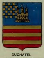 DUBUARD Jean-Marin DUBUARD (1769-????), colonel, chef du 1er d'escadron de l'artillerie à cheval de la garde impériale, baron de l'Empire par lettres patentes du 6 juin 1811. Règlement d'armoiries : Coupé : au premier, parti à dextre lozangé d'azur et d'argent, chargé en abîme d'une billette de gueules et à sénestre des barons tirés de l'armée ; au deuxième, de sinople au crocodile passant, contourné d'or, surmonté d'un comble cousu d'azur chargé d'une étoile entre deux bombes, le tout d'argent. Livrées : les couleurs de l'écu, le verd en bordure seulement. Informations plus précises sur http://chan.archivesnationales.culture.gouv.fr/ BB/29/968 page 302. Titre de baron, accordé par décret du 15 mars 1810, à Jean Marin Dubuard. Saint-Cloud (6 juin 1811). BB/29/1066 page 85. M. Marin Dubuard, chef d'escadron dans l'artillerie de la garde impériale. DUBUC Jean-Jacques DUBUC (1763-????), chef d'escadron en retraite, chevalier de l'Empire par lettres patentes du 28janvier 1809. Règlement d'armoiries : D'azur, au sabre d'argent, monté d'or, posé en bande, accompagné en chef de deux étoiles et en pointe de deux molettes d'éperon posées en bande, le tout d'argent ; à la bordure de gueules au signe des chevaliers, occupant le tiers de l'écu. Livrées : les couleurs de l'écu. Informations plus précises sur http://chan.archivesnationales.culture.gouv.fr/ BB/29/970 page 338. Titre de chevalier, accordé à Jean-Jacques Dubuc, à la suite du décret du 25 prairial an XII le nommant membre de la Légion d'honneur. Paris (28 janvier 1809). BB/29/1072 page 1. M. le chevalier Dubuc. DUC Robert-Henri-Marie DUC (1781-????), écuyer de la princesse Pauline, duchesse de Guastalla, baron de l'Empire par lettres patentes du 14 avril 1810. Règlement d'armoiries : Ecartelé : aux premier et quatrième, bandé d'or et d'argent de six pièces ; au deuxième, des barons officiers des maisons des princes de notre famille ; au troisième, écartelé aux premier et quatrième losangé d'azur et d'or, au deuxième et troisième de gueules plein. Livrées : jaune, bleu, rouge. Informations plus précises sur http://chan.archivesnationales.culture.gouv.fr/ BB/29/967 page 170. Titre de baron, accordé par décret du 3 décembre 1809 , à Robert, Henry, Marie Duc. Compiègne (14 avril 1810). BB/29/1064 page 244. M. le baron Robert Duc. DUCHASTEL Louis-Claude DUCHASTEL (1772-????), major au 19° dragons, chevalier de l'Empire par lettres patentes du 30 juillet 1810. Règlement d'armoiries : D'argent, au chevron de gueules du tiers de l'écu, au signe des chevaliers, accompagné en chef de deux molettes de sinople et en pointe d'un dextrochère au naturel rebrassé de sinople, tenant une épée haute de gueules. Livrées : les couleurs de l'écu, le verd en bordure seulement. Informations plus précises sur http://chan.archivesnationales.culture.gouv.fr/ BB/29/972 page 99. Titre de chevalier accordé à Louis, Claude Duchastel, à la suite du décret du 25 prairial an XII le nommant membre de la Légion d'honneur. Saint-Cloud (30 juillet 1810). BB/29/1073 page 109. M. le chevalier Duchastel. DUCHATEL Charles-Jacques-Nicolas DUCHATEL (1751-????), conseiller d'Etat à vie, directeur général de l'administration des domaines, comte de l'Empire par lettres patentes de mai 1808. Règlement d'armoiries : Coupé : au premier, d'azur chargé d'un château donjonné de deux tours d'or, girouettées d'argent ; au deuxième, fascé d'or et de gueules de six pièces ;au quartier des comtes conseillers d'Eétat au neuvième de l'écu. Livrées : bleu, jaune, rouge et blanc. Informations plus précises sur http://chan.archivesnationales.culture.gouv.fr/ BB/29/974 page 114. Titre de comte accordé à Charles, Jacques, Nicolas Duchâtel. Bayonne (mai 1808). BB/29/1061 page 85. M. le comte Duchatel. DUCHÊNE Alexandre DUCHÊNE (1773-????), chef de bataillon au 48e de ligne, chevalier de l'Empire par lettres patentes du 4 janvier 1811. Règlement d'armoiries : Tiercé en fasce d'azur d'or et de gueules ; l'azur, à deux épées en sautoir d'argent ; l'or, au chêne terrassé de sinople ; le gueules, au signe des chevaliers légionnaires. Livrées : les couleurs de l'écu, le verd en bordure seulement. Informations plus précises sur http://chan.archivesnationales.culture.gouv.fr/ BB/29/972 page 276. Titre de chevalier accordé à Alexandre Duchêne, à la suite du décret du 14 brumaire an XIII le nommant membre de la Légion d'honneur. Paris (4 janvier 1811). BB/29/1074 page 228. M. le chevalier Duchêne. DUCHESNE DE GILLEVOISIN Antoine-Charles-Nicolas DUCHESNE DE GILLEVOISIN (1758-????), député au corps législatif, membre du collège électoral de Seine-et-Oise, baron de l'Empire par lettres patentes du 12 avril 1813. Règlement d'armoiries : Parti : au premier, de gueules, au bourdon de pellerin de sable, chargé de trois coquilles d'argent, et flanqué, vers le haut, de deux étoiles du même ; au second, d'azur à trois glands, tigés et feuillés d'or, surmonté au deuxième point d'une étoile du même. Livrées : les couleurs de l'écu. Informations plus précises sur http://chan.archivesnationales.culture.gouv.fr/ BB/29/969 page 103. Titre de baron, accordé par décret du 29 mars 1813, à Antoine, Charles, Nicolas Duchesne de Gille Voisin. Saint-Cloud (12 avril 1813). BB/29/1067 page 37. M. Duchesne de Gillevoisin, député au Corps législatif. DUCHEYRON DU PAVILLON DUCHI DUCLAUX Pierre DUCLAUX (1773-????), chef d'escadron des grenadiers à cheval de la garde impériale, chevalier de l'Empire par lettres patentes du 20 août 1808. Règlement d'armoiries : D'azur, à la pyramide d'or accostée à dextre en chef d'une grenade enflammée d'argent, à sénestre d'une molette d'éperon d'or ; le tout soutenu d'une champagne de gueules au signe des chevaliers. Livrées : bleu, rouge et jaune. Pierre-Alexis DUCLAUX (1775-????), colonel du 11e cuirassiers, baron de l'Empire par lettres patentes du 21
