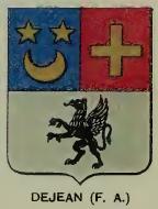 DEGLI-ALESSANDRI Jean DEGLI-ALESSANDRI (1765-????), premier chambellan de la princesse de Lucques et de Piombino, grande-duchesse de Toscane, député au corps législatif, baron de l'Empire par lettres patentes du 26 mai 1810. Règlement d'armoiries : D'azur, au mouton à deux têtes adossées et passant d'argent, surmonté de deux palmes en sautoir d'or ; au franc-quartier des barons officiers de la maison des princes de notre famille. Livrées : les couleurs de l'écu. Informations plus précises sur http://chan.archivesnationales.culture.gouv.fr/ BB/29/967 page 208. Titre de baron, accordé par décret du 3 décembre 1809 , à Jean Degli Alessandri. Compiègne (26 avril 1810 ). BB/29/1064 page 281. M. le baron Degli Alessandri. DEGRAND DEHAIES DE MONTIGNY François-Emmanuel DEHAIES DE MONTIGNY (1743-????), général de brigade, chevalier de l'Empire par lettres patentes du 12 avril 1813. Règlement d'armoiries : D'or, à la fasce d'azur chargée de deux étoiles d'argent, accompagnée en chef d'une épée en bande la pointe à dextre de gueules, et en pointe d'une molette du même le tout soutenu d'une champagne du tiers de l'écu de gueules chargée du signe des chevaliers légionnaires. Livrées : les couleurs de l'écu. Informations plus précises sur http://chan.archivesnationales.culture.gouv.fr/ BB/29/972 page 489. Titre de chevalier accordé à François, Emmanuel Dehaies de Montigny, à la suite du décret du 4 germinal an XII le nommant membre de la Légion d'honneur. Saint-Cloud (12 avril 1813). BB/29/1075 page 232. M. Dehaies de Montigny, général de brigade. DEHASTREL Etienne DEHASTREL (1766-????), général de brigade, baron de l'Empire par lettres patentes du 27 juillet 1808. Règlement d'armoiries : D'azur, au chevron d'or accompagné en chef de deux molettes d'éperons d'argent et en pointe d'une tête de lévrier d'argent colletée de gueules et bouclée d'or ; au quartier des barons militaires, brochant sur le tout. Livrées : les couleur de l'écu. Informations plus précises sur http://chan.archivesnationales.culture.gouv.fr/ BB/29/966 page 143. Titre de baron, accordé par décret du 19 mars 1808 , à Etienne Dehastrel. Toulouse (27 juillet 1808 ). BB/29/1063 page 221. M. le baron Dehastrel. DEHAUSSY-ROBECOURT Mathias-Antoine DEHAUSSY-ROBECOURT (1775-????), président du tribunal de Péronne, membre du collège électoral de la Somme, baron de l'Empire par lettres patentes du 10 avril 1811. Règlement d'armoiries : D'azur, à la tour d'argent flanquée de deux palmes d'or, surmontée d'un comble de gueules à trois étoiles d'or ; au franc-quartier des barons membres de collège électoral brochant au neuvième de l'écu. Livrées : les couleurs de l'écu. Informations plus précises sur http://chan.archivesnationales.culture.gouv.fr/ BB/29/968 page 242. Titre de baron, accordé par décret du 12 mars 1811, à Mathias, Antoine Dehaussy Robecourt. Paris (10 avril 1811). BB/29/1066 page 28. M. le baron de Haussy-Robecourt, membre du collège électoral du département de la Somme. DEIN Paul-Louis-Marie DEIN (1768-????), colonel du 15e de ligne, baron de l'Empire par lettres patentes du 12 novembre 1811. Règlement d'armoiries : D'or, au daim passant de sable au comble d'azur chargé de trois étoiles en fasce d'argent ; au franc-quartier des barons tirés de l'armée brochant au neuvième de l'écu. Livrées : les couleurs de l'écu. Informations plus précises sur http://chan.archivesnationales.culture.gouv.fr/ BB/29/968 page 393. Titre de baron, accordé par décret du 15 août 1810, à Paul, Louis, Marie Dein. Saint-Cloud (12 novembre 1811). BB/29/1066 page 149. M. le baron Dein, colonel du 15ème de ligne. DEJEAN François-André DEJEAN (1748-????), évêque d'Asti, baron de l'Empire par lettres patentes du 3 mai 1809. Règlement d'armoiries : Coupé : au premier, parti d'azur au croissant montant d'or surmonté de deux étoiles du même, et de gueules au signe des barons évêques ; au deuxième, d'argent au griffon essorant de sable. Livrées : les couleurs de l'écu. Informations plus précises sur http://chan.archivesnationales.culture.gouv.fr/ BB/29/974 page 200. Titre de baron accordé à François, André Dejean. Ebersdorf (3 mai 1809). BB/29/1061 page 123. M. le baron Dejean, évêque d'Asti. DEJEAN Jean-François-Aimé DEJEAN (1749-????), général de division, grand trésorier et membre du grand conseil de la Légion d'honneur, ministre directeur de l'administration de la guerre, comte de l'Empire par lettres patentes du 1er juin 1808. Règlement d'armoiries : D'argent, au griffon essorant de sable ; au comble d'azur chargé à senestre, de deux étoiles et d'un croissant d'or et à dextre, du quartier des comtes ministres. Livrées : amaranthe clair, blanc et jaune. Informations plus précises sur http://chan.archivesnationales.culture.gouv.fr/ BB/29/974 page 127. Titre de comte accordé à Jean, François, Aimé Dejean. Bayonne (1er juin 1808). BB/29/1061 page 6. M. le comte Dejean, ministre. DEJEAN Pierre-François-Marie-Auguste DEJEAN (1780-????), colonel du 11e régiment de dragons, baron de l'Empire par lettres patentes du 1er juin 1808. Règlement d'armoiries : D'argent, au griffon essorant de sable ; au comble d'azur chargé à dextre, de deux étoiles et d'un croissant d'or et à sénestre, du quartier des barons sortis de l'armée. Livrées : amaranthe clair, blanc et jaune. Informations plus précises sur http://chan.archivesnationales.culture.gouv.fr/ BB/29/966 page 35. Titre de baron, accordé par décret du 19 mars 1808 , à Pierre, François, Marie, Auguste Dejean. Bayonne (juin 1808 ). BB/29/1062 page 151. M. le baron Dejean. DELABORDE Henri-François DELABORDE (1764-????), général de division, comte de l'Empire par lettres patentes du 12 novembre 1809. Règlement d'armoiries : Ecartelé : au premier, des comtes tirés de l'armée ; au deuxième, bandé d'azur et d'or de six pièces à la bordure de gueules ; au troisième, de gueul
