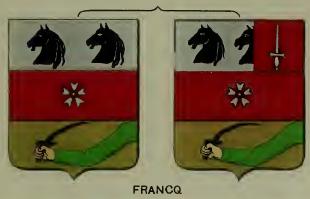 FRANÇOIS DE NEUFCHATEAU (Nicolas), sénateur, membre de l'Institut, comte de l'Empire par lettres patentes de mai 1808. Règlement d'armoiries : De sinople, au cygne d'argent, surmonté de trois épis d'or ; au franc-quartier des comtes-sénateurs. Livrées : les couleurs noir, bleu, jaune et verd. Informations plus précises sur http://chan.archivesnationales.culture.gouv.fr/ BB/29/974 page 74. Titre de comte accordé à Nicolas François de Neufchâteau. Bayonne (mai 1808). BB/29/1060 page 103. M. le comte François de Neufchâteau. FRANCONIN SAURET (Pierre), général de division, baron de l'Empire par lettres patentes du 11 novembre 1813. Règlement d'armoiries : D'or, à la forteresse à cinq bastions de sable chargée en coeur d'une rose de gueules ; au comble d'azur à trois étoiles en fasce d'or ; au franc-quartier des barons tirés de l'armée brochant au neuvième de l'écu. Livrées : les couleurs de l'écu. Informations plus précises sur http://chan.archivesnationales.culture.gouv.fr/ BB/29/969 page 181. Titre de baron, accordé par décret du 28 juin 1813, à Pierre Franconin Sauret. Saint-Cloud (11 novembre 1813). BB/29/969 page 181. Titre de baron, accordé par décret du 28 juin 1813, à Pierre Franconin Sauret. Saint-Cloud (11 novembre 1813). FRANCQ (Louis-Bernard), chef d'escadron aux chasseurs à cheval de la garde impériale, chevalier de l'Empire par lettres patentes du 20 août 1808. Tiercé en fasce : d'argent, à deux têtes de cheval affrontées de sable ; de gueules, au signe des chevaliers ; et d'or, au dextrochère au naturel paré de sinople, armé d'un sabre d'argent. Livrées : les couleurs de l'écu, le verd dans les bordures seulement. Colonel du 2° cuirassiers, baron de l'Empire par lettres patentes du 26 avril 1810. Règlement d'armoiries : Tiercé en fasce : d'argent, à deux têtes de cheval de sable ; de gueules, au signe des chevaliers ; et d'or, au dextrochère au naturel rebrassé de sinople, armé d'un sabre d'argent ; au franc-quartier des barons tirés de l'armée brochant sur le tout. Livrées : blanc jaune rouge. Informations plus précises sur http://chan.archivesnationales.culture.gouv.fr/ BB/29/970 page 165. Titre de chevalier, accordé suite au décret le nommant membre de la Légion d'honneur en date du 25 prairial en XII, à Louis, Bernard Francq. Saint-Cloud (20 août 1808). BB/29/967 page 192. Titre de baron, accordé par décret du 15 août 1809 , à Louis, Bernard Francq. Compiègne (26 avril 1810 ). BB/29/1064 page 271. M. le baron Francq. FRAPART (Fiacre-Joseph), colonel du 50e de ligne, baron- de l'Empire par lettres patentes du 17 mai 1810. Règlement d'armoiries : Coupé : au premier, parti à dextre d'azur au chevron versé d'or, accompagné en chef d'une étoile du même, placée au deuxième point, et à senestre des barons tirés de l'armée ; au deuxième, de sable au lion d'argent. Livrées : bleu, rouge, noir, jaune et blanc. Informations plus précises sur http://chan.archivesnationales.culture.gouv.fr/ BB/29/967 page 248. Titre de baron, accordé par décret du 19 mars 1808 , à Fiacre, Joseph Frapart. Gand (17 mai 1810 ). BB/29/1065 page 4. M. le baron Frapart. FRÉMIN-BEAUMONT (Nicolas), député au Corps législatif, membre du collège électoral de la Manche, chevalier de l'Empire par lettres patentes du 25 mars 1810. D'azur, à la fasce d'or, accompagnée en chef de trois étoiles en fasce d'argent et en pointe d'une fourmi du même ; à la bordure de gueules du tiers de l'écu au signe des chevaliers posé au deuxième point en chef. Livrées : bleu, jaune, blanc. Préfet des Bouches-du-Rhin, baron de l'Empire par lettres patentes du 17 mai 1810. Règlement d'armoiries :D'azur, à la fasce d'or, accompagnée en chef de trois étoiles en fasce d'argent et en pointe d'une fourmi du même ; au franc-quartier des barons préfets. Livrées : les couleurs de l'écu. Informations plus précises sur http://chan.archivesnationales.culture.gouv.fr/ BB/29/970 page 536. Titre de chevalier, accordé à Nicolas Frémin Beaumont, à la suite du décret du 25 janvier 1810 le nommant membre de la Légion d'honneur. Compiègne (25 mars 1810). BB/29/967 page 250. Titre de baron, accordé par décret du 22 avril 1810 , à Nicolas Fremin-Beaumont. Gand (17 mai 1810 ). BB/29/1064 page 320. M. le baron Frémin Beaumont. BB/29/1067 page 198. M. le baron Frémin de Beaumont, préfet du département de la Vendée. FRÉMIN-DUMESNIL (Gabriel-François-Charles), président du collège électoral de la Manche, baron de l'Empire par lettres patentes du 13 août 1811. Règlement d'armoiries : D'azur, à la fasce d'or, accompagnée en chef de trois étoiles en fasce et en pointe d'une fourmi le tout d'argent ; au franc-quartier des barons Présidents de collèges électoraux. Livrées : bleu, blanc, rouge, jaune. Informations plus précises sur http://chan.archivesnationales.culture.gouv.fr/ BB/29/968 page 335. Titre de baron, accordé par décret du 1er juin 1811, à Gabriel, François, Charles Fremin Dumesnil. Rambouillet (13 août 1811). BB/29/1066 page 107. M. le baron Fremin Dumesnil, président du collège électoral du département de la Manche. BB/29/1067 page 177. M. le baron Fremin-Dumesnil, membre de la Chambre des députés des départements. FRÈRE (Georges), général de division, comte de l'Empire par lettres patentes du 18 mars 1809. Règlement d'armoiries : Coupé : le premier, parti à dextre des comtes tirés de l'armée et à sénestre d'argent à trois tours de gueules, maçonnées, ouvertes et ajourées de sable, deux et une ; le deuxième, de gueules au pont de trois arches d'or, maçonné de sable, soutenu d'une rivière d'argent. Livrées : les couleurs de l'écu. Informations plus précises sur http://chan.archivesnationales.culture.gouv.fr/ BB/29/966 page 365. Titre de comte, accordé par décret du 19 mars 1808 , à Georges Frere. Schoenbrunn (18 juin 1809). BB/29/1062 page 42. M. le comte Frere. FRÉSIA (Maurice)