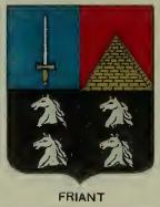 FRESNAIS (Jean-Bonaventure), chevalier de la Briais, 18 juin 1809. Règlement d'armoiries : D'or, à trois branches de fresne de sinople deux et une ; à la bordure de gueules du tiers de l'écu au signe des chevaliers posé au second point en chef. Livrées : les couleurs de l'écu, le verd dans les bordures seulement. Informations plus précises sur http://chan.archivesnationales.culture.gouv.fr/ BB/29/970 page 437. Titre de chevalier de la Briais, accordé à Jean, Bonaventure Fresnais, à la suite du décret du 2 messidor an XII le nommant membre de la Légion d'honneur. Schoenbrunn (18 juin 1809). BB/29/1072 page 131. M. le chevalier Fresnais. FRESTEL (Jean-Charles-Élie), référendaire de 1re classe à la Cour des Comptes, chevalier de l'Empire par lettres patentes du 14 juin 1810. Règlement d'armoiries : D'or, à la bande de gueules du tiers de l'écu au signe des chevaliers, accompagnée de trois roses de pourpre deux et une. Livrées : jaune et rouge. Informations plus précises sur http://chan.archivesnationales.culture.gouv.fr/ BB/29/972 page 7. Titre de chevalier accordé à Jean, Charles, Elie Frestel, à la suite du décret du 20 mars 1810 le nommant membre de la Légion d'honneur. Saint- Cloud (14 juin 1810). BB/29/1073 page 23. M. le chevalier Frestel. FRETEAU (Emmanuel-Jean-Baptiste), membre du collège électoral et du Conseil général de Seine-et-Marne, substitut du procureur impérial près le tribunal civil de la Seine, baron de Pény avec majorat par lettres patentes du 25 mars 1809. Règlement d'armoiries : De gueules freté de six pièces d'argent ; sur le tout, d'argent au phénix essorant d'azur accompagné de quatre étoiles de même ; au franc-quartier des barons membres des collèges électoraux. Livrées : les couleurs de l'écu. Informations plus précises sur http://chan.archivesnationales.culture.gouv.fr/ BB/29/1001 pages 42-47. Institution de majorat attaché au titre de baron au profit de Emmanuel, Jean, Baptiste Freteau, accordée par lettres patentes du 25 mars 1809, à Paris. BB/29/1080 page 18. M. Fréteau, baron de Peny. FREVOL DE LA COSTE FRIANT (Louis), général de division, commandant la 2° division du 3e corps de la grande armée, comte de l'Empire par lettres patentes du 5 octobre 1808. Règlement d'armoiries : Coupé : le premier, parti à dextre des comtes militaires, et à sénestre de gueules à la pyramide d'or maçonnée de sable ; le deuxième, de sable aux quatre têtes de cheval d'argent, deux et deux. Livrées : les couleurs de l'écu. Informations plus précises sur http://chan.archivesnationales.culture.gouv.fr/ BB/29/966 page 200. Titre de comte, accordé par décret du 19 mars 1808 , à Louis Friant. Palais d'Erfurt (5 octobre 1808). BB/29/1062 page 33. M. le comte Friant. FRIEDERICHS (Jean-Parfait), colonel-major du 2e régiment des fusiliers de la garde impériale, baron de l'Empire par lettres patentes du 2 février 1809. Règlement d'armoiries : Ecartelé : au premier, de gueules au lion rampant et contourné d'or, armé et lampassé de sable ; au deuxième, d'argent brisé du franc canton des barons tirés de l'armée ; au troisième, d'or aux trois cannettes de sable deux et une ; au quatrième, d'azur au cerf passant d'argent, le pied droit accorné d'or. Livrées : les couleurs de l'écu. Informations plus précises sur http://chan.archivesnationales.culture.gouv.fr/ BB/29/966 page 322. Titre de baron, accordé par décret du 19 mars 1808 , à Jean, Parfait Friederichs. Paris (2 février 1809). BB/29/1063 page 198. M. le baron Friederichs. FRIN DE CORMÉRÉ (Jérôme), chef d'escadron au 6e hussards, chevalier de l'Empire par lettres patentes du 19 janvier 1811. Règlement d'armoiries : D'argent, au chevron du tiers de l'écu de gueules au signe des chevaliers légionnaires accompagné en chef de deux étoiles d'azur et en pointe d'une branche d'olivier en fasce de sinople, sommée d'une merlette de sable allumée du champs. Livrées : blanc, rouge, bleu, noir. Informations plus précises sur http://chan.archivesnationales.culture.gouv.fr/ BB/29/972 page 286. Titre de chevalier accordé à Jérôme Frin de Cormeré, à la suite du décret du 14 mars 1806 le nommant membre de la Légion d'honneur. Paris (19 janvier 1811). BB/29/1074 page 237. M. le chevalier Frin de Cormeré. FRIRION (François-Joseph), colonel du 69e de ligne, baron de l'Empire par lettres patentes du 26 octobre 1808. Règlement d'armoiries : D'argent, au chien assi et contourné, la tête élevée à sénestre, de sable, colleté et bouclé d'or; au quartier des barons militaires. Livrées : blanc, noir, rouge et jaune. Informations plus précises sur http://chan.archivesnationales.culture.gouv.fr/ BB/29/966 page 222. Titre de baron, accordé par décret du 19 mars 1808 , à François-Joseph Fririon. Paris (26 octobre 1808 ). FRIRION (François-Nicolas), général de division, baron de l'Empire par lettres patentes du 31 janvier 1810. Règlement d'armoiries : Ecartelé : au premier, d'azur en barre d'or ; au deuxième, des barons tirés de l'armée ; au troisième, d'argent au chien de sable, accolé d'or, assis, contourné, la tête élevée vers le canton sénestre ; au quatrième, d'azur au pont de trois arches d'argent maçonné de gueules. Livrées : les couleurs de l'écu. Informations plus précises sur http://chan.archivesnationales.culture.gouv.fr/ BB/29/966 page 492. Titre de baron, accordé par décret du 15 août 1809 , à François, Nicolas Fririon. Paris (31 janvier 1810 ). FRIRION (Joseph-Mathias), secrétaire général du ministère de la guerre, inspecteur en chef aux revues,baron de l'Empire par lettres patentes du 2 octobre 1813. Règlement d'armoiries : D'argent, au chien assis, contourné, la tête élevée, de sable, colleté d'or, et surmonté d'une étoile de gueules ; au franc-quartier des barons tirés de l'armée, brochant au neuvième de l'écu. Livrées : les couleurs de l'écu. Informations plus précises sur http://cha