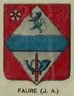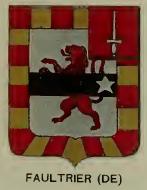 FAUDOAS (Pierre-Paul de), évêque de Meaux, baron de l'Empire par lettres patentes du 28 mai 1809. Règlement d'armoiries : D'azur, à la croix d'or ; au franc-quartier des barons évêque. Livrées : les couleurs de l'écu. Informations plus précises sur http://chan.archivesnationales.culture.gouv.fr/ BB/29/974 page 197. Titre de baron accordé à Pierre, Paul de Faudoas. Ebersdorf (28 mai 1809). FAUDOAS (Pierre-Paul de), officier d'ordonnance de l'Empereur, baron de l'Empire par lettres patentes du 18 août 1810. Règlement d'armoiries : D'azur, parti d'un trait de sable ; le premier, à la croix d'or ; le deuxième, à trois fers de hallebarde du même ; au franc-quartier des barons tirés de l'armée brochant sur le deuxième parti . Livrées : les couleurs de l'écu. BB/29/967 page 417. Titre de baron, accordé par décret du 15 août 1809 , à Pierre, Paul de Faudoas. Saint-Cloud (18 août 1810 ). FAULCON (Félix), membre du collège électoral du département de la Vienne, chevalier de la Parisière par lettres patentes du 21 décembre 1808. Règlement d'armoiries : D'argent, au faucon longé et perché de sable, becqué et membré de gueules allumé du champ, soutenu de deux deux palmes en sautoir de sinople ; à la champagne du tiers de l'écu de gueules au signe des chevaliers. Livrées : blanc, rouge et noir. Informations plus précises sur http://chan.archivesnationales.culture.gouv.fr/ BB/29/970 page 292. Titre de chevalier, accordé à Félix Faulcon, à la suite du décret du 25 prairial an XIII le nommant membre de la Légion d'honneur. Madrid (21 décembre 1808). BB/29/1072 page 96. M. le chevalier Faulcon. BB/29/1076 page 314. M. Faulcon, membre du collège électoral de la Vienne. FAULLAIN (Jean-François), chef de bataillon au 79e de ligne, chevalier de l'Empire par lettres patentes du 23 juillet 1810. Règlement d'armoiries : Tiercé en bande : l'or, au casque de sable pannaché ; l'argent, de gueules au signe des chevaliers ; et l'azur à trois grenades une et deux d'or. Livrées : les couleurs de l'écu. Informations plus précises sur http://chan.archivesnationales.culture.gouv.fr/ BB/29/967 page 382. Titre de chevalier, accordé par décret du 15 août 1809 , à Jean, François Faullain. Paris (23 juillet 1810 ). BB/29/1073 page 82. M. le chevalier Faullain. FAULTRIER (Simon), général de brigade au corps impérial de l'artillerie, baron de l'Empire par lettres patentes du 2 mai 1811. Règlement d'armoiries : D'argent, au lion de gueules chargé d'une fasce de sable à l'étoile du champ posée à sénestre ; à la bordure componée de gueules et d'or ; au franc-quartier des barons tirés de l'armée, brochant au neuvième de l'écu. Livrées : blanc, rouge, noir, jaune. Informations plus précises sur http://chan.archivesnationales.culture.gouv.fr/ BB/29/968 page 266. Titre de baron, accordé par décret du 15 août 1810, à Simon Faultrier. Saint-Cloud (2 mai 1811). BB/29/1066 page 47. M. le baron Faultrier, général de brigade. FAURAX (Jean-Louis), chef d'escadron au 10° dragons, chevalier de l'Empire par lettres patentes du 30 octobre 1810. Règlement d'armoiries : D'or, à la fasce du tiers de l'écu de gueules au signe des chevaliers légionnaires accompagnée en chef d'un ponton de sable soutenu d'une mer de sinople et en pointe d'un homme nageant de carnation soutenu d'une mer de sinople. Livrées : les couleurs de l'écu, le verd en bordure seulement. Informations plus précises sur http://chan.archivesnationales.culture.gouv.fr/ BB/29/972 page 239. Titre de chevalier accordé à Jean, Louis Faurax, à la suite du décret du 13 messidor an XII le nommant membre de la Légion d'honneur. Fontainebleau (30 octobre 1810). BB/29/1074 page 164. M. le chevalier Faurax. FAURE (Joseph-Antoine), major au 17° de ligne, chevalier de l'Empire par lettres patentes du 18 août 1810. Règlement d'armoiries : D'argent vêtu de gueules : l'argent à la fasce d'azur, accompagnée en chef d'un lion rampant du même armé d'une épée haute de gueules et en pointe d'un cor de chasse aussi d'azur traversé d'une épée haute en pal de gueules ; le gueules au signe des chevaliers posé au premier point en chef. Livrées : les couleurs de l'écu. Informations plus précises sur http://chan.archivesnationales.culture.gouv.fr/ BB/29/972 page 118. Titre de chevalier accordé à Joseph, Antoine Faure, à la suite du décret du 25 avril 1806 le nommant membre de la Légion d'honneur. Saint-Cloud (18 août 1810). FAURE (Louis-Joseph), conseiller d'Etat, chevalier de l'Empire par lettres patentes du mai 1808. Règlement d'armoiries : De sable, à la salamandre d'argent sur un feu allumé de gueules, la tête de la salamandre contournée ; à la champagne de gueules au signe des chevalier. Livrées : noir, rouge et blanc. Informations plus précises sur http://chan.archivesnationales.culture.gouv.fr/ BB/29/970 page 4 . Titre de chevalier, accordé suite au décret le nommant membre de la Légion d'honneur en date du 25 prairial an XII, à Louis, Joseph Faure. Bayonne (mai 1808). BB/29/1076 page 47. M. Faure, ex-législateur. FAURE DE GIERS (Chrétien-François-Antoine), colonel commandant le 4e régiment d'artillerie à cheval, chevalier de l'Empire, mai 1808. Règlement d'armoiries : D'argent chargé du premier du parti de deux traits à la croix de la Légion d'honneur en date, accostée à sénestre d'un canon sur son affût, de sable, en chef, et de deux pyramides d'azur maçonnées de sable en pointe. Livrées : bleu, rouge et noir. Baron de l'Empire par lettres patentes du 13 août 1810. Règlement d'armoiries : Ecartelé : au premier, d'argent à l'athlète essayant de fendre un arbre, le tout au naturel ; au deuxième, des barons tirés de l'armée ; au troisième, d'azur à la fasce d'or surmontée de trois étoiles deux et une et soutenue de deux épées en sautoir, le tout d'or ; au quatrième, de sable à la fasce contrebretessée d'argent. Livrées : les couleurs de 