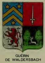 GUDIN (Pierre-César), colonel du 16e de ligne, baron de l'Empire par lettres patentes du 14 février 1810. Règlement d'armoiries : D'argent, au coq au naturel, soutenu d'un croissant d'azur et surmonté de trois étoiles de gueules rangées en fasce, posées en chef ; au franc-quartier des barons tirés de l'armée. Livrée : les couleurs de l'écu. Informations plus précises sur http://chan.archivesnationales.culture.gouv.fr/ BB/29/967 page 45. Titre de baron, accordé par décret du 15 août 1809 , à Pierre, César Gudin. Paris (14 février 1810). BB/29/1064 page 108. M. le baron Gudin. BB/29/1052 pages 47-48. Charles, Gabriel, César Gudin, successeur au titre de comte accordé à son père, le général César, Charles, Etienne Gudin. BB/29/1066 page 277. M. Jules, César, Pierre Gudin (le mineur), fils du général comte Gudin. GUEHENEUC (Charles-Louis-Olivier-Joseph), colonel aide de camp de l'Empereur, baron de l'Empire par lettres patentes du 13 août 1810. Règlement d'armoiries : Coupé : au premier, parti à dextre de sinople, l'épée haute en pal d'or, la poignée nouée de sable, et à sénestre des barons tirés de l'armée ; au deuxième, d'azur semé d'étoiles d'argent au bouclier antique d'or. Livrées : les couleurs de l'écu, le verd en bordure seulement. Informations plus précises sur http://chan.archivesnationales.culture.gouv.fr/ BB/29/967 page 405. Titre de baron, accordé par décret du 15 août 1809 , à Charles, Louis, Olivier, Joseph Guéheneuc. Saint-Cloud (15 août 1810). GUÉHÉNEUC (François-Scholastique), sénateur, comte de l'Empire par lettres patentes du 14 avril 1810. Règlement d'armoiries : D'azur, au lion d'argent surmonté de deux macles du même ; au franc-quartier des comtes sénateurs. Livrées : les couleurs de l'écu. Informations plus précises sur http://chan.archivesnationales.culture.gouv.fr/ BB/29/974 page 217. Titre de comte accordé à François, Scholastique Guéhéneuc. Compiègne (14 avril 1810). BB/29/1061 page 63. M. le comte Guéhéneuc, sénateur. GUÉRARD (Edmond-Joachim), membre du collège électoral de l'Aube, baron de l'Empire avec majorat par lettres patentes du 14 avril 1810. Règlement d'armoiries : Parti : au premier, d'or à l'ancre d'azur, traversée en bande d'un bâton péri du même, et soutenu d'une champagne de sable à la rivière en fasce d'argent ; au deuxième, coupé, au premier des bartons membres des collèges électoraux, au second d'azur à la colombe perchée sur un tertre, le tout d'argent, accompagné de trois étoiles du même. Livrées : les couleurs de l'écu. Informations plus précises sur http://chan.archivesnationales.culture.gouv.fr/ BB/29/1002 pages 41-43. Institution de majorat attaché au titre de baron au profit de Edmond, Joachim Guérard, accordée par lettres patentes du 14 avril 1810, à Compiègne. BB/29/1080 page 58. M. le baron Guérard (majorat). BB/29/1005 pages 124-133. Institution de majorat attaché au titre de baron au profit de Antoine Guérard, accordée par lettres patentes du 29 juillet 1818, à Saint-Cloud. BB/29/1052 pages 102B-103. Antoine Guérard, successeur au titre de baron accordé à son père, le sieur Edmond, Joachim Guérard. GUÉRET (Gilles-François), major d'infanterie, chevalier de l'Empire par lettres patentes du 11 juillet 1810. Règlement d'armoiries : D'or, à la fasce de gueules du tiers de l'écu au signe des chevaliers, accompagnée en chef de deux scarabées ailés d'azur et en pointe d'une tête de licorne de sable, mouvant de la pointe. Livrées : bleu, jaune, noir, rouge. Colonel commandant d'armes à Sarrelouis, baron de l'Empire par lettres patentes du 25 mars 1813. Règlement d'armoiries : D'or, à la fasce de gueules surmontée de deux étoiles en fasce, d'azur et soutenue d'une licorne naissante, de sable, mouvante du bas de l'écu ; au franc-quartier des barons tirés de l'armée brochant au neuvième de l'écu. Livrées, jaune, rouge, noir, blanc. Informations plus précises sur http://chan.archivesnationales.culture.gouv.fr/ BB/29/972 page 43. Titre de chevalier accordé à Gilles, François Gueret, à la suite du décret du 27 juin 1807 le nommant officier de la Légion d'honneur. Rambouillet (11 juillet 1810). BB/29/1073 page 50. M. le chevalier Guéret. BB/29/969 page 77. Titre de baron, accordé par décret du 10 février 1813, à Gilles, François Guéret. Paris (25 mars 1813). BB/29/1067 page 6. M. Guéret, colonel commandant d'armes à Sarrelouis. GUÉRIN (Jacques-Julien), général de brigade, baron de Waldersboch par lettres patentes du 21 décembre 1808. Règlement d'armoiries : Ecartelé : au premier, d'azur à deux chevrons d'or superposés, accompagnés de trois étoiles de même, deux en chef une en pointe ; au deuxième, des barons militaires ; au troisième, d'hermines au lion rampant de gueules ; au quatrième, de sable au cerf courant d'argent sur une terrasse de sinople, d'où sortent deux arbres de même accostés chacun au pic d'une plante de fougère au naturel. Livrées : les couleurs de l'écu, le verd en bordure seulement. Informations plus précises sur http://chan.archivesnationales.culture.gouv.fr/ BB/29/966 page 285. Titre de baron de Waldersboch, accordé par décret du 19 mars 1808 , à Jacques-Julien Guérin. Madrid (21 décembre 1808). BB/29/1063 page 133. M. le baron Guérin de Waldersboch. GUEUREL (Nicolas-Noël), chef de bataillon au 13° de ligne, chevalier de l'Empire par lettres patentes du 6 octobre 1810. Règlement d'armoiries : D'argent, à l'arbre terrassé de sinople fruité d'or, sur le fût duquel broche un sanglier courant contourné de sable ; à la bordure de gueules du tiers de l'écu au signe des chevaliers légionnaires posé au deuxième point en chef. Livrées : les couleurs de l'écu, le verd en bordure seulement. Informations plus précises sur http://chan.archivesnationales.culture.gouv.fr/ BB/29/972 page 203. Titre de chevalier accordé à Nicolas, Noël Gueurel, à la suite