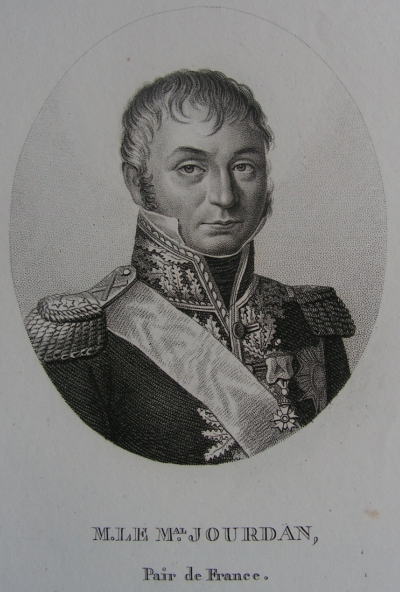 JORDY (Nicolas-Louis), général de brigade, membre du collège électoral du Bas-Rhin, chevalier de l'Empire par lettres patentes du 12 novembre 1811. Règlement d'armoiries : D'azur, au sapin d'or, terrassé de sinople, adextré d'un coq d'argent et sénestré d'un chien assis contourné du même, posés l'un et l'autre sur la terrasse, accompagné à dextre d'une épée haute en fasce d'argent, entre deux étoiles d'or et à sénestre d'une ancre du même ; le tout soutenu d'une champagne du tiers de l'écu de gueules au signe des chevaliers légionnaires. Livrées : les couleurs de l'écu, le verd en bordure seulement. Informations plus précises sur http://chan.archivesnationales.culture.gouv.fr/ BB/29/972 page 402. Titre de chevalier accordé à Nicolas, Louis Jordy, à la suite du décret du 25 prairial an XII le nommant officier de la Légion d'honneur. Saint-Cloud (18 novembre 1811). BB/29/1075 page 107. M. Jordy, général de brigade. JOSEPHINE JOUAN (Jacques-Casimir), chef de bataillon au 96e de ligne, chevalier de l'Empire par lettres patentes du 18 août 1810. Règlement d'armoiries : D'or, au cheval arrêté de sable, surmonté d'une gerbe de blé de sinople et soutenu d'une champagne de gueules du tiers de l'écu au signe des chevaliers. Livrées : les couleurs de l'écu, le verd en bordure seulement. Informations plus précises sur http://chan.archivesnationales.culture.gouv.fr/ BB/29/972 page 125. Titre de chevalier accordé à Jacques, Casimir Jouan, à la suite du décret du 14 avril 1807 le nommant membre de la Légion d'honneur. Saint-Cloud (18 août 1810). BB/29/1074 page 12. M. le chevalier Jouan. JOUBERT (Joseph-Antoine-Renié), colonel du 30e de ligne, baron de l'Empire par lettres patentes du 9 décembre 1809. Règlement d'armoiries : Parti : d'azur, à la gerbe d'or ; et de sable, au dromadaire aussi d'or ; au franc-quartier des barons tirés de l'armée. Livrées : bleu, noir, rouge et jaune. ![]() Informations plus précises sur http://chan.archivesnationales.culture.gouv.fr/ BB/29/966 page 414. Titre de baron, accordé par décret du 15 août 1809 , à Joseph, Antoine , René Joubert. Paris (9 décembre 1809). BB/29/1062 page 172. M. Joubert. JOUBERT-BONNAIRE (Joseph-François), député au Corps législatif, chevalier de l'Empire par lettres patentes du 28 janvier 1809. Règlement d'armoiries : D'argent au chevron d'azur à cinq clochettes d'argent sommé d'un vol ouvert d'azur et accompagné en coeur d'un rocher de six pointes de gueules, bordure de gueules au signe des chevaliers posé au second point d'honneur en chef ; livrées : les couleurs de l'écu. Informations plus précises sur http://chan.archivesnationales.culture.gouv.fr/ BB/29/970 page 331. Titre de chevalier, accordé à Joseph, François Joubert Bonnaire, à la suite du décret du 27 nivose an XIII le nommant membre de la Légion d'honneur. Paris (28 janvier 1809). JOUFFROY (Pierre), colonel directeur d'artillerie, baron de l'Empire par lettres patentes du 25 mars 1809. Règlement d'armoiries : Coupé : le premier parti d'azur au chevron d'or, accompagné de trois bombes d'argent et de gueules au signe des barons tirés de l'armée ; le deuxième d'or au laurier de sinople terrassé de même, sénestré d'un lion passant de sable, regardant le laurier. Livrées : les couleurs de l'écu et verd en bordure seulement. Informations plus précises sur http://chan.archivesnationales.culture.gouv.fr/ BB/29/966 page 343. Titre de baron, accordé par décret du 19 mars 1808 , à Pierre Jouffroy. Paris (25 mars 1809). BB/29/1063 page 181. M. le baron Jouffroy. BB/29/1067 page 230. M. le baron Jouffroy, maréchal de camp. JOURDAN (André-Joseph), préfet du département des Forêts, baron de l'Empire par lettres patentes du 11 juin 1810. Règlement d'armoiries : D'azur, au chevron d'argent, accompagné d'iun soleil cantonné à dextre du même et en pointe d'un cerf passant aussi d'argent ; au comble d'or chargé de trois tourteaux en fasce de gueules ; au franc-quartier des barons préfets, brochant au neuviève de l'écu. Livrées : les couleurs de l'écu. ![]() Informations plus précises sur http://chan.archivesnationales.culture.gouv.fr/ BB/29/967 page 324. Titre de baron, accordé par décret du 3 décembre 1809 , à André, Joseph Jourdan. Saint-Cloud (11 juin 1810). BB/29/1065 page 48. M. Jourdan. JOURDE (Gilbert-Amable), substitut du procureur général impérial près la Cour de cassation, chevalier de l'Empire par lettres patentes de mai 1808. Règlement d'armoiries : D'argent, tiercé en bande de gueules chargé de l'étoile de la légion d'honneur en date, accostée à dextre de trois étoiles de sable placées deux et une, à sénetre d'un soleil. Livrées : brun, noisette, rouge et blanc. Informations plus précises sur http://chan.archivesnationales.culture.gouv.fr/ BB/29/970 page 15 . Titre de chevalier, accordé suite au décret le nommant membre de la Légion d'honneur en date du 25 prairial an XII, à Gilbert, Amable Jourde. Bayonne (mai 1808). BB/29/1076 page 293. M. Jourde, avocat général. JOURNU-AUBER (Bernard), sénateur, comte de Tustal par lettres patentes de mai 1808. Règlement d'armoiries : De sinople, au bélier d'argent mérinos marchant, une étoile d'or en chef ; au quartier du Sénat. Livrées : bleu, blanc, jaune et verd dans les galons seulement. Informations plus précises sur http://chan.archivesnationales.culture.gouv.fr/ BB/29/974 page 104. Titre de comte accordé à Bernard Journu-Aubert. Bayonne (mai 1808). BB/29/1061 page 32. M. le comte Journu Aubert. JOUY (Louis-André), major au 46° de ligne, chevalier de l'Empire par lettres patentes du 21 novembre 1810. Règlement d'armoiries : Informations plus précises sur http://chan.archivesnationales.culture.gouv.fr/ JOYEUX (Jacques), chef de bataillon au 17e de ligne, chevalier de l'Empire par lettres patentes du 4 janvier 1811. Règlement d'armoiries : Tiercé en fasce : au premier, d'azur à trois épées en 