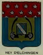 NEUHAUS MAISONNEUVE (Emmanuel-Michel-Bertrand-Gaspard), général de division, commandant d'armes de Bitche, membre du collège électoral du Bas-Rhin, chevalier de l'Empire par lettres patentes du 23 juillet 1810. Règlement d'armoiries : Parti : au premier, d'or, à la maison de sable, ouverte et ajourée du même; au deuxième, d'azur à l'épée haute d'or, au comble d'argent à trois étoiles en fasce d'azur; champagne de gueules du tiers de l'écu au signe des chevaliers. Livrées : les couleurs de l'écu. Informations plus précises sur http://chan.archivesnationales.culture.gouv.fr/ BB/29/972 page 91. Titre de chevalier accordé à Emmanuel, Michel, Bertrand, Gaspard Neuhaus Maisonneuve, à la suite du décret du 25 prairial an XII le nommant officier de la Légion d'honneur. Paris (23 juillet 1810). BB/29/1052 pages 21B-22B. Julien, Antoine, Félix Neuhaus Maison Neuve, successeur à la possession d'une rente accordée à son père, le chef d'escadron Pierre, Antoine Neuhaus Maisonneuve. NEY (Michel), maréchal d'Empire, chef de la 7e cohorte de la Légion d'honneur, duc d'Elchingen par lettres patentes de mai 1808. Règlement d'armoiries : D'or, bordé d'azur; en coeur, un écu du second à l'orle du champ, accompagné à dextre et à sénestre d'une main armée d'un sabre, le tout de sable, la main dextre mouvant de sénestre et la sénestre mouvant de dextre; au chef de duc. Livrées : rouge, bleu, jaune et sable. Prince de la Moskowa par lettres patentes du 25 mars 1813. Règlement d'armoiries : D'or, à la bordure d'azur, chargé en abime d'un écusson du second; à l'orle du champ, soutenu de deux mains armés, accollées et adossées de sable, tenant chacune un sabre haut du même. Le tout surmonté du chef des ducs de l'Empire. Livrées : les couleurs de l'écu. ![]() ![]() ![]() Informations plus précises sur http://chan.archivesnationales.culture.gouv.fr/ BB/29/1035 pages 13-15. Titre de duc d'Elchingen accordé à Michel Ney, à la suite du décret du 19 mars 1808 . Bayonne (mai 1808). BB/29/1035 pages 58-60. Titre de prince de la Moskowa accordé à Michel Ney, à la suite des lettres provisoires du 8 février 1813 . Paris (25 mars 1813). BB/29/1060 page 20. M. Ney, duc d'Elchingen. NIBOYET (Jean), colonel attaché à l'état-major général, chevalier de l'Empire par lettres patentes du 11 juillet 1810. Règlement d'armoiries : Parti : au premier, d'azur à la montagne d'or, sommé d'une tour du même, ajourée de sable; au deuxième, d'argent au lion de sable, armé et lampassé de gueules, tenant une épée haute d'azur; à la champagne de gueules du tiers de l'écu au signe des chevaliers non légionnaires. Livrées : les couleurs de l'écu. Informations plus précises sur http://chan.archivesnationales.culture.gouv.fr/ BB/29/967 page 374. Titre de chevalier, accordé par décret du 15 août 1809 , à Jean Niboyer. Rambouillet (11 juillet 1810). BB/29/1073 page 54ter. M. le chevalier Niboyer. NICOLAI (Aimar-François-Marie-Chrétien de), chambellan de l'Empereur, maire de Goussainville, membre du collège électoral de Seine-et-Oise, comte de l'Empire par lettres patentes du 4 février 1811. Règlement d'armoiries : D'azur, au lévrier courant d'argent, accolé de gueules et bouclé d'or; au franc-quartier des comtes officiers de Notre Maison. Livrées : les couleurs de l'écu. Informations plus précises sur http://chan.archivesnationales.culture.gouv.fr/ BB/29/968 page 160. Titre de comte, accordé par décret du 15 août 1810, à Aymard, François, Marie, Chrétien de Nicolay. Paris (4 janvier 1811). BB/29/1065 page 292. M. le comte de Nicolaÿ. NICOLAI (Aimar-Jean-Tannegui-Raimond de), membre du collège électoral de l'Aisne, baron de l'Empire par lettres patentes du 15 juin 1812. Règlement d'armoiries : D'azur, au lévrier courant d'argent, accolé de gueules, bouclé d'or; au franc-quartier des barons membres de collège électoral brochant au neuvième de l'écu. Livrées : bleu, blanc, rouge. Informations plus précises sur http://chan.archivesnationales.culture.gouv.fr/ BB/29/968 page 486. Titre de baron, accordé par décret du 20 avril 1812, à Aymard, Jean, Tanneguy, Raymond de Nicolai. Koenigsberg (20 juin 1812). BB/29/1066 page 226. M. le baron de Nicolaÿ, membre du collège électoral de l'Aisne. NICOLAS (Jean), général de brigade, baron de l'Empire par lettres patentes du 2 mars 1811. Règlement d'armoiries : Coupé : au premier, parti d'azur et de gueules, l'azur, au dextrochère brassardé, mouvant du flanc dextre, d'argent, tenant un sabre du même monté d'or, adextré au premier point en chef d'une étoile aussi d'argent, le gueules, au signe des barons tirés de l'armée; au deuxième, d'azur à la croix patriarchale d'or. Livrées : les couleurs de l'écu. Informations plus précises sur http://chan.archivesnationales.culture.gouv.fr/ BB/29/968 page 214. Titre de baron, accordé par décret du 19 mars 1808, à Jean Nicolas. Paris (2 mars 1811). NICOLAS (Jean-Baptiste), major du 6e hussards, chevalier de l'Empire par lettres patentes du 29 septembre 1809. Règlement d'armoiries : D'argent, à la fasce de gueules du tiers de l'écu au signe des chevaliers, accompagné en chef de deux sabres de hussards d'azur, croisés en sautoir, surmontés d'un bonnet de hussards de sable chargés d'une plaque d'or et en pointe d'un cerf lancé de sable soutenu de sinople. Livrées : gris, blanc, verd, le verd en bordure seulement. Informations plus précises sur http://chan.archivesnationales.culture.gouv.fr/ BB/29/970 page 498. Titre de chevalier, accordé à Jean, Baptiste Nicolas, à la suite du décret du 26 frimaire an XII le nommant membre de la Légion d'honneur. Schoenbrunn (29 septembre 1809). NIVET (François), adjudant commandant, baron de l'Empire par lettres patentes du 9 septembre 1810. Règlement d'armoiries : Coupé : au premier, parti à dextre d'azur au coq d'or, à sénestre des barons tirés de l'armée; au deuxième, d'argent au 
