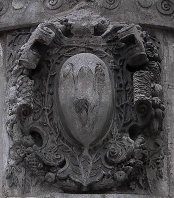 cintre inférieur de l’échauguette, un écusson porte les armes des