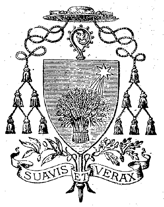 la gerbe. L'écu est posé sur la crosse. Devise : Suavis