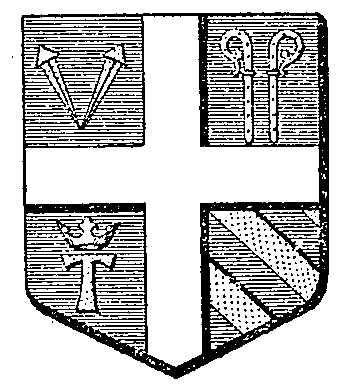 Armes : de gueules à la croix tréflée d'argent, chargée en abîme d'une