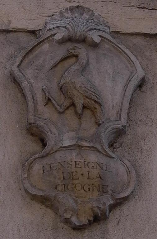 qui subsiste sur la façade de SIGAULT : l’enseigne de la cigogne
